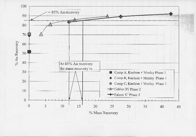 Winter Metallurgical Testing by SGS Lakefield Research Limited, A gold recovery of approximately 97% with a gravity, flotation, and cyanidation process and 85% by gravity alone. (Foran Mining Corporation (FOM) Press Release May 3, 2003).