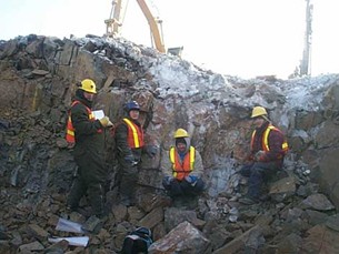 A 6,000 tonne bulk sample was extracted from a 120m long pit that was blasted to a depth of 6m and an average width of approximately 5m. The average grade from the pit face and blast hole is 0.35 oz/ton gold (13 g/t Au). Blast holes were drilled at 1.35 m (4 foot) centers. (2003 Foran Mining Corporation (FOM) Press Releases February 26, March 11, March 17, March 19, March 31, April 16).