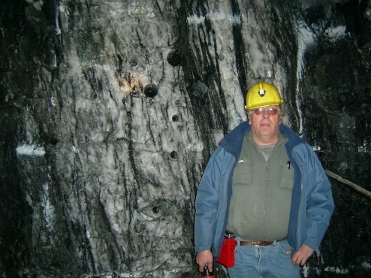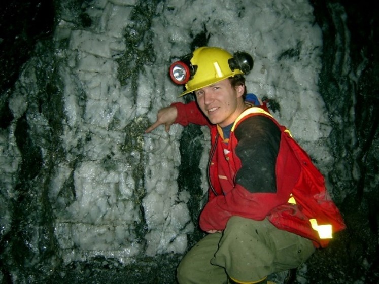 Underground Face 8 with Richard pointing at the sphalerite